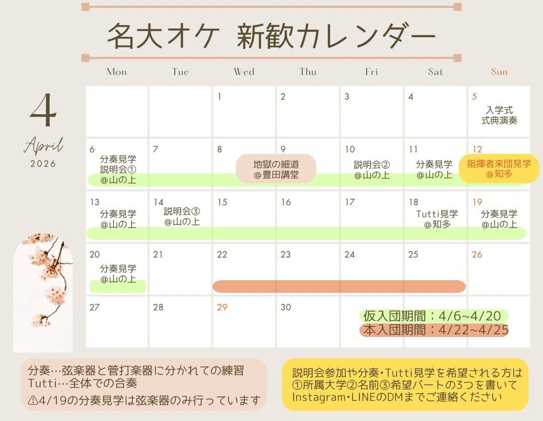 名古屋大学交響楽団では、新入団員を随時募集しています。