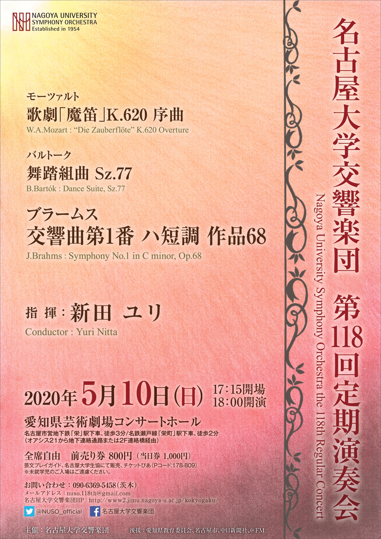 新型コロナウイルスの感染拡大防止のため、誠に遺憾ながら5月10日(日)の第118回定期演奏会を中止させていただきます。