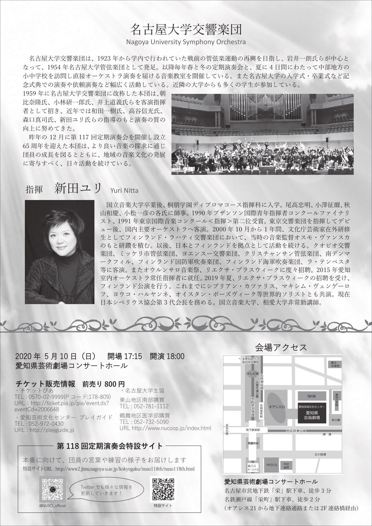 ※第117回定期演奏会の会場でチケットをご予約いただきましたお客様には、当団の担当者から直接ご連絡させていただきます。